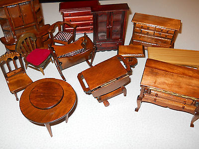 Antique style Wood mini Doll House Furniture crib clock Desk table Lot See pics.