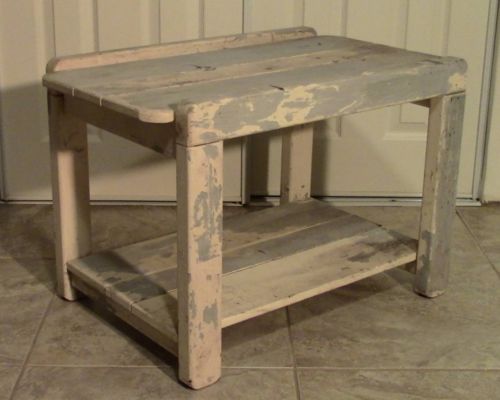 Title (ebay affiliate link): Primitive Solid Wood Bench Blue White Painted Crocks Buckets Garden Plant Stand