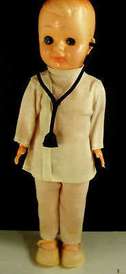 Medical Doctor Doll Toy Stethoscope Vintage Celluloid Mid Century Toy Blue Eye A