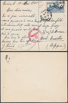 Tunisia 1940 Used stamp on censured postcard to Belgium....................R6697