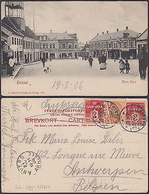 Denmark 1906 Used stamps on postcard ( Thisted ) to Belgium................R6723