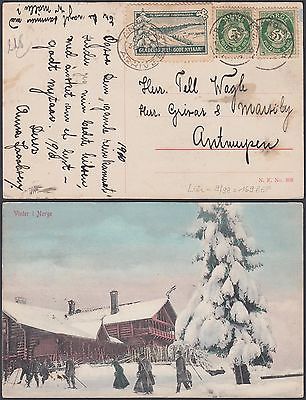 Norway 1910 Used stamps on postcard ( Winter ) to Belgium..................R6754