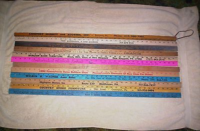 12 WOODEN ADVERTISING YARDSTICKS LOT ~ ALL PENNSYLVANIA