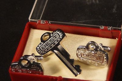 Vintage Silvertone BEST Lock Advertising Tie Tac Tack Pin & Matching Cuff Links