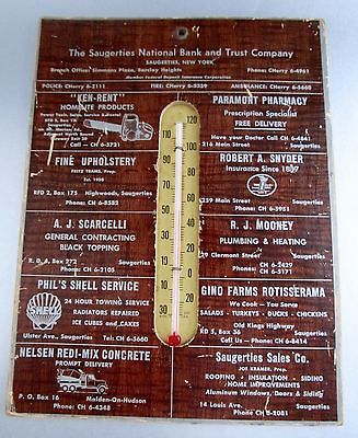 VINTAGE ADVERTISING THERMOMETER SAUGERTIES,N.Y. NATIONAL BANK & OTHER BUSINESSES