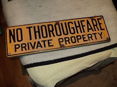 VINTAGE NO THOROUGHFARE PRIVATE PROPERTY TIN SIGN COUNTRY SIDE AUTOMBILIA ROAD