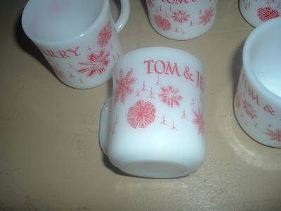 VTG. FIRE KING MILK GLASS TOM & JERRY MUGS SNOWFLAKE 6