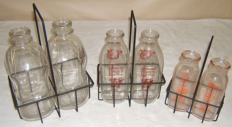 6 Old milk bottle gal qt pt w carriers Vermont dairy NR