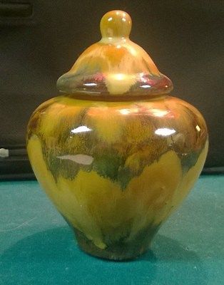 Carmel, Burgundy and Green Color Ceramic Jar with Lid
