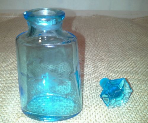 Antique Hand etched floral design mold Blown Aqua Blue perfume Bottle w/ Stopper