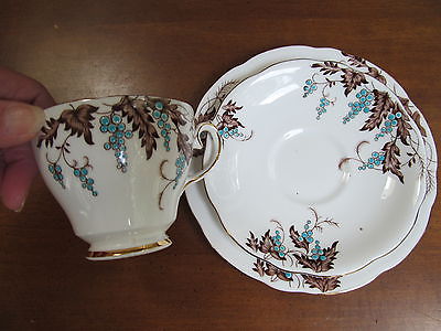 Vintage GLADSTONE GLENCAIRN TRIO CUP & SAUCER PLATE BLUE RAISED ENAMEL GRAPES