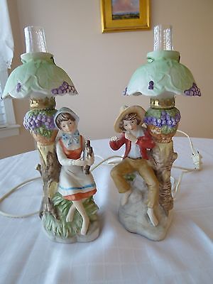 Pair of Bisque - Ceramic Figurine Dresser Lamps