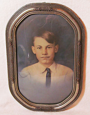VINTAGE 18" x 12" CONCAVE GLASS RETRO FRAME PICTURE OF SMILING BOY WITH TIE