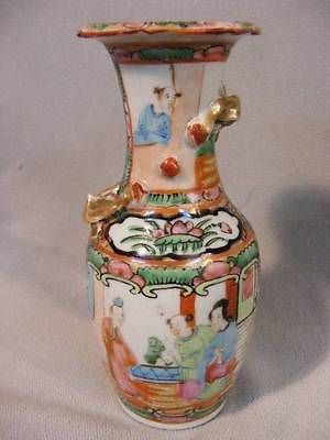 ANTIQUE CHINESE ROSE MEDALLION 6" TALL VASE - GENRE SCENES