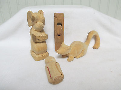 Vintage Hand Carved Wood Whimsies-Animals-Mouse-cat-Folk Art