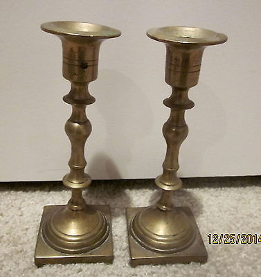 Pair of Antique Georgian Heavy Brass Shabbat Candlesticks Judaica 19th Century