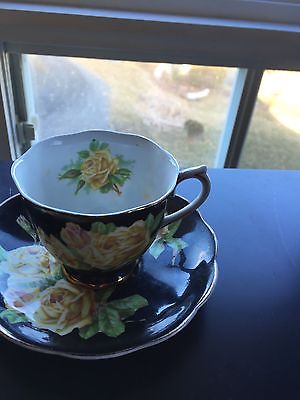 Rare Royal Albert Cup and Saucer Tea Rose on Black background