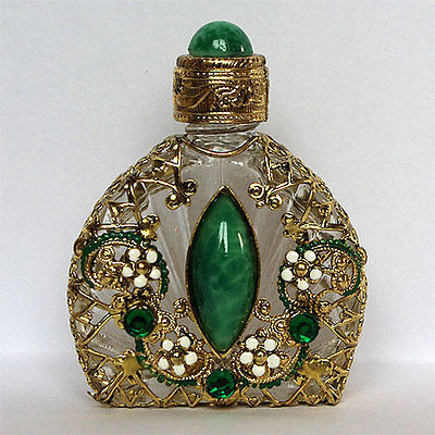 Vintage Czech handmade MALACHITE rhinestones glass perfume bottle