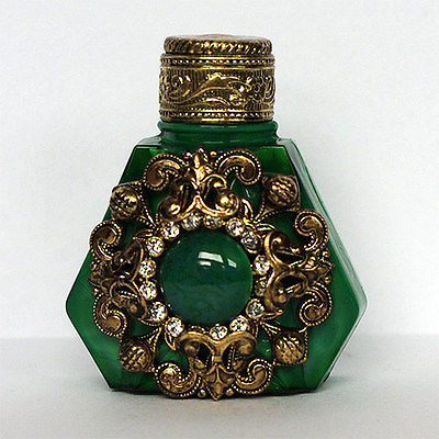 Vintage Czech handmade MALACHITE glass MINI perfume bottle