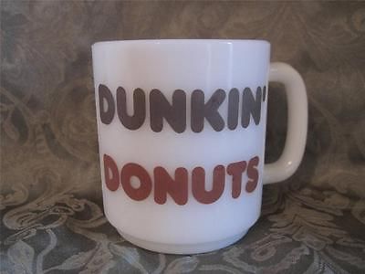 Vintage Glasbake White Milk Glass Dunkin Donuts Mug Old Brown Logo