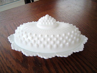 Title (ebay affiliate link): Fenton Hobnail Scalloped Edge Covered Butter Dish White Milk Glass Maker Mark