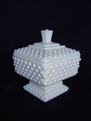 VINTAGE MILK GLASS HOBNAIL SQUARE 5" X 5" X 6" BOX