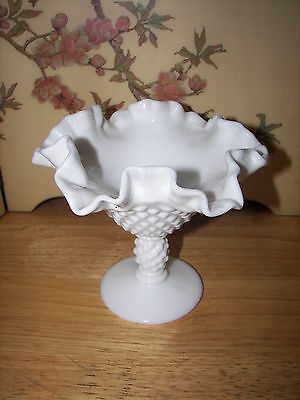 VTG FENTON WHITE HOBNAIL MILK GLASS COMPOTE/CANDY DISH WITH HOBNAIL ON STEM