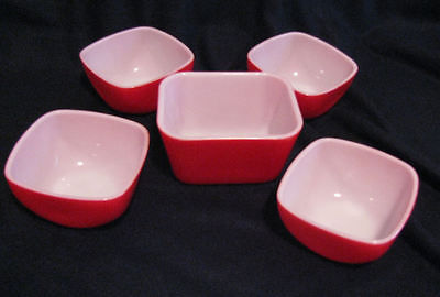 Pyrex#407#0501 Hostess Milk Glass Square Bowl/Dish/Ovenware Red 7&8oz Vintage