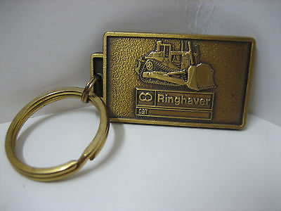 Vintage "RINGHAVER Heavy Equipment Co." Brass Keychain, Key Ring Bulldozer