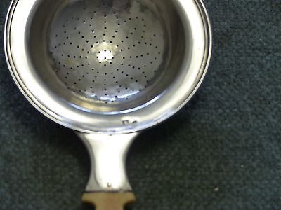 Sterling Silver Tea Strainer with carved handle and silver inset