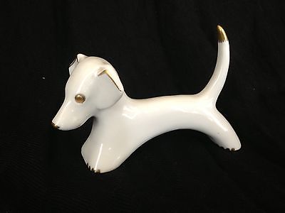 Fein Bayreuth Germany SOPHIENTHAL White w/ Gold Dachshund Figurine