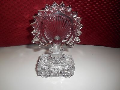 Title (ebay affiliate link): Vintage Cut Glass Perfume Bottle with Large Fan Stopper Top - 6" high