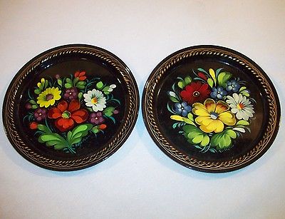 Title (ebay affiliate link): 2 Metal Tole Hand Painted Small Tray Trinket Flower Signed VINTAGE Fedoskino?