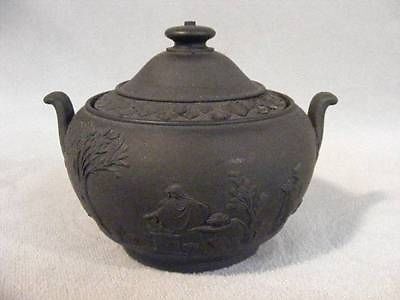 ANTIQUE 1800's WEDGWOOD BLACK BASALT SUGAR BOWL - CLASSICAL GENRE