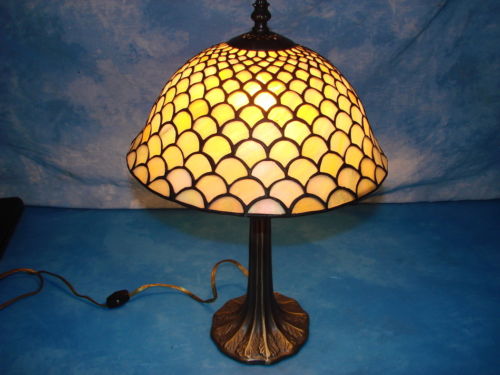 Title (ebay affiliate link): Lovely ATQ Repro Sm Dale Tiffany Signed Table Lamp Oyster Shell Opalescent