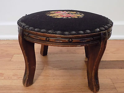 Title (ebay affiliate link): Vintage Wood Needlepoint Footstool Ottoman Black Floral Nailhead Antique Bench
