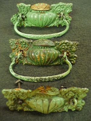 3 VINTAGE ORNATE DECORATIVE METAL DRAWER PULLS, HANDLES HARDWARE