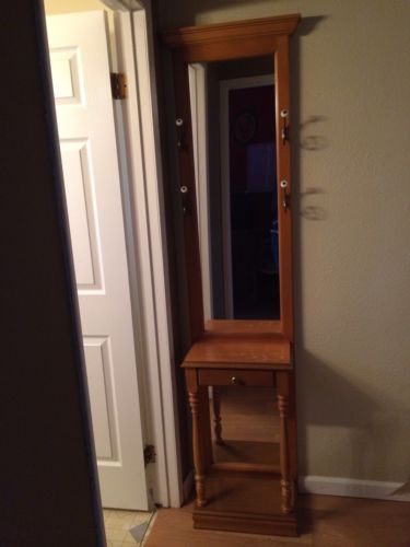 Tall & Skinny Mirrored Hall Tree With Drawer