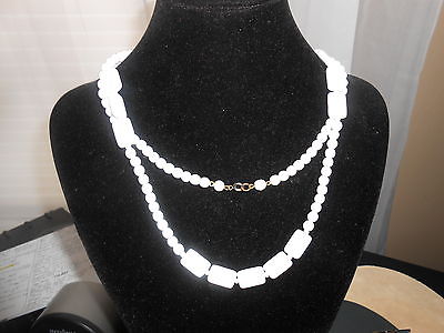 ANTIQUE VINTAGE MILK GLASS NECKLACE RARE 36 INCHES 1950'S GREAT CONDITION