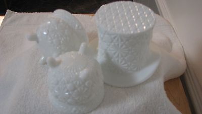 Fenton Milk Glass Daisy Button set lot of 3 Hat candle holder and 3 footed Dish