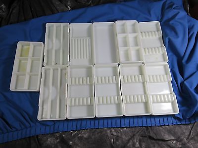Antique Dental Cabinet Trays Milk Glass Set of 11 American Cabinet Co Two Rivers