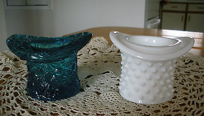 FENTON BLUE DAISY HAT & FENTON WHITE MILK GLASS HOBNAIL HAT ~ TOOTHPICK HOLDERS