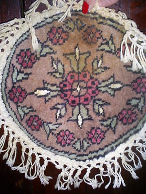 Title (ebay affiliate link): Antique Primitive Carpet Penny Table Mat Cover Hooked Rug Handsewn Doll House