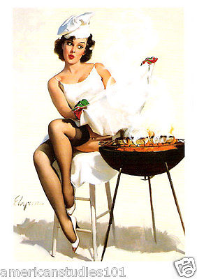 Title (ebay affiliate link): Postcard Risque Pin-Up Girl Rare Treat 1964 Barbecutie Gil Elvgren
