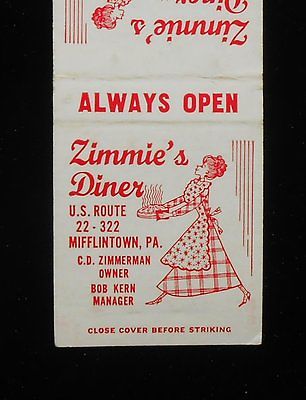 1950s Matchbook Zimmie's Diner Route 22 C. D. Zimmerman Bob Kern Mifflintown PA