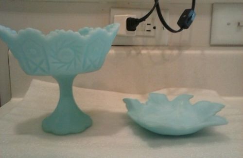 Set of 2 antique Fenton light blue milkglass candy dishes