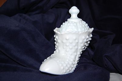 FENTON MILK GLASS HOBNAIL COVERED CAT BOOT SHOE SUGAR NON USA MADE