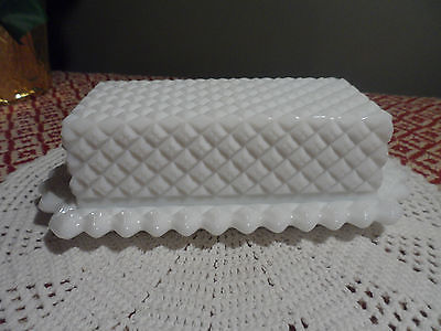 Vintage Westmoreland Diamond Pattern Milk Glass Butter Dish