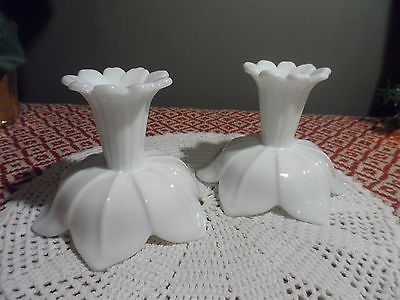 SET OF ELEGANT Vintage White Milk Glass Candlesticks ----WEDDINGS-BRIDAL