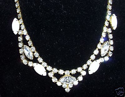 Title (ebay affiliate link): Vintage Clear Rhinestones and Milk Glass Navettes Choker 15"